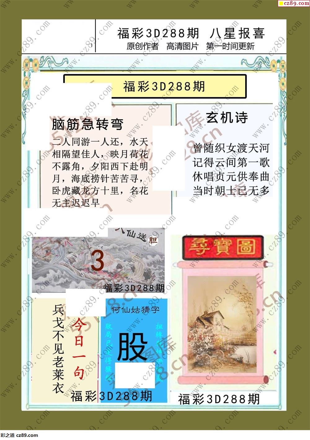 > 八星报喜25年288期福彩3d画谜
