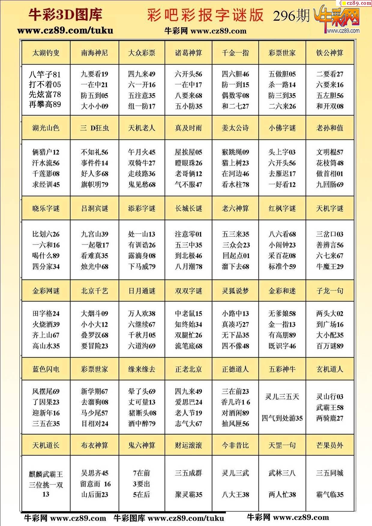 牛彩版3D字谜彩报图25年296期打印版