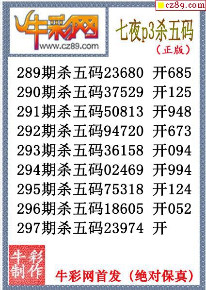 > 七夜杀码297期体彩P3图谜(原创)